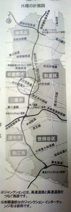 なんかよく解らんけどオイラの住んでるとこからは、北側に【青梅街道インターチェンジ(仮称)】、南側には【東八道路インターチェンジ(仮称)】が出来るらしい・・・。