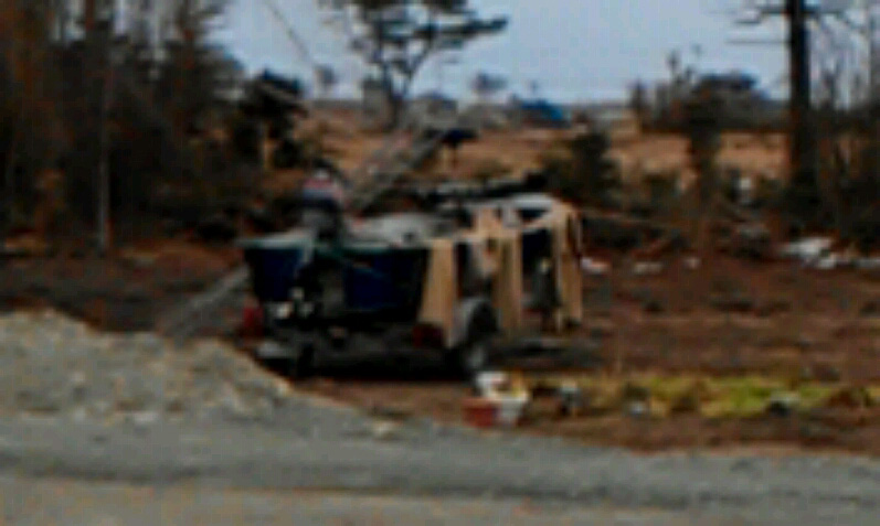 そして、午前10時前に現場へ到着すると、そこからちょっと離れた民家の先に、トレーラーに載せられたアルミボートを見付け、よく見ると船体にJBのステッカーが貼ってあった。