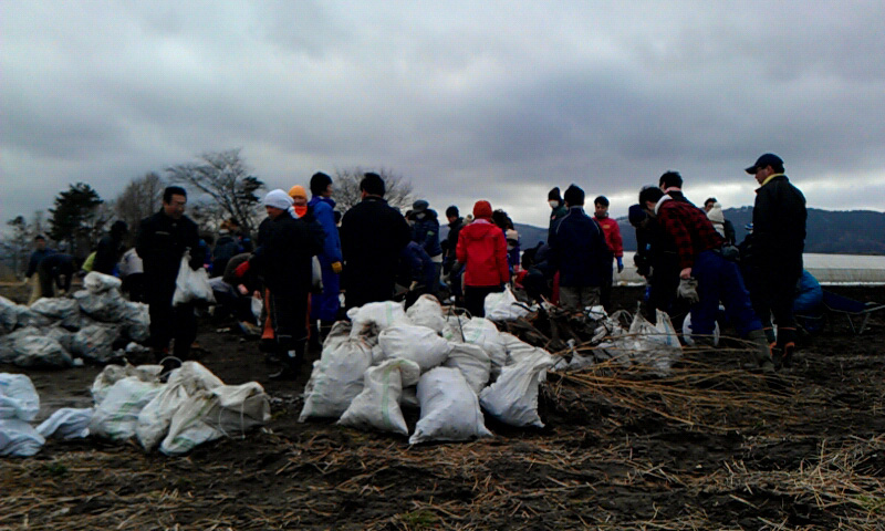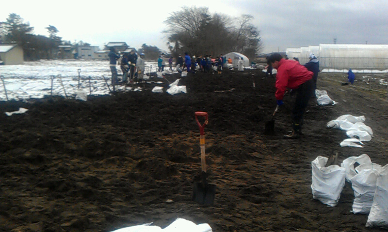 現地で僕らに与えられた仕事は、山元町に数多くあった“いちご農園”を再建するため、津波で運ばれて来た細かな木片や鉄屑、プラスチックなどのゴミを畑から取り除くこと。