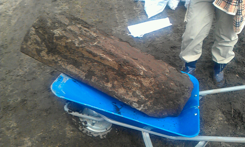 全員が手作業で(スコップで)掘り返し、一つひとつ拾っていくだけなんだけど、前日に薄っすらと積もった雪のせいか、土がかなり重くて以外と重労働でした。