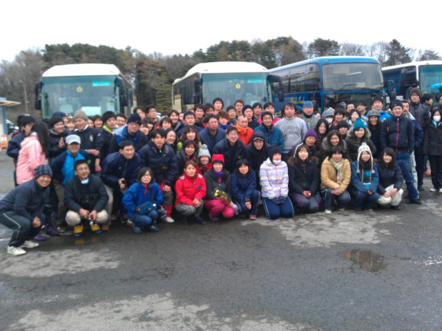 でも全く要領も分からず、あてもなしに行くのは不安だったので、大阪の旅行会社が主催する災害支援ボランティアバスツアーに申し込み、3月10日(土)の深夜(正確には11日の0時半くらい)、さいたまスーパーアリーナの前から山元町に向けて出発しました。