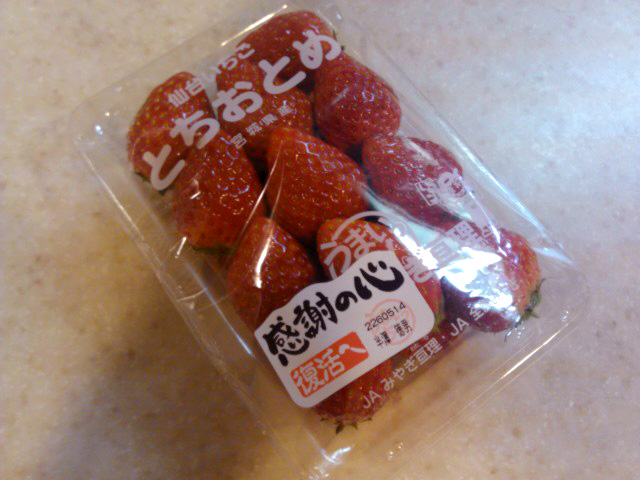 そうそう、帰りにボランティアセンターで山元町産の“いちご”が販売されてたので、1パック買ってみた。