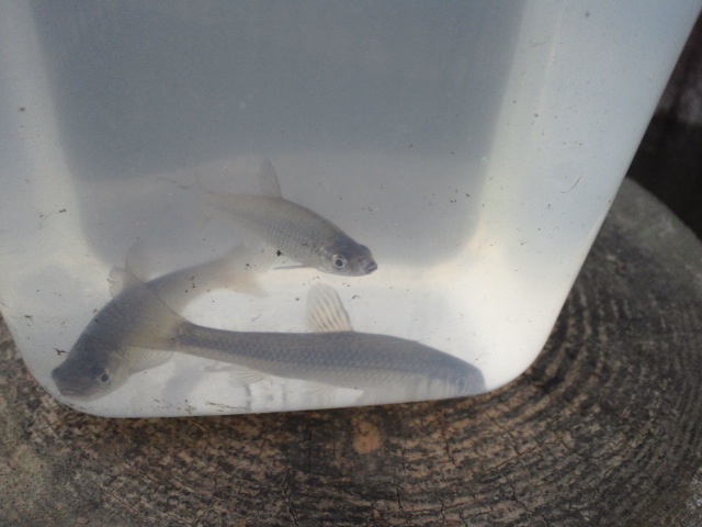 まぁ「釣れたらラッキー!」みたいな感じで、半分は釣り場の下見だったんですが、とりあえずは釣れましたよ、モツゴ(クチボソ)が4匹…。