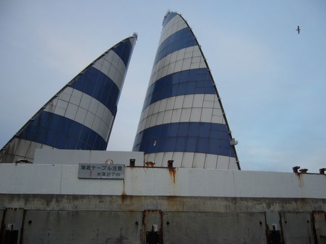 お次は東京湾の名物スポット?アクアラインの海底トンネル上に有る“風の塔”まで移動し・・