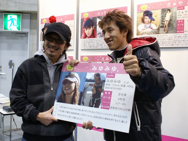 まぁどんなフィッシングショーだったかは、いろいろなブログで既に紹介されていると思うので、オイラはたくさん撮った写真の中から「サラ~」っと人物中心でアップさせていただきます。