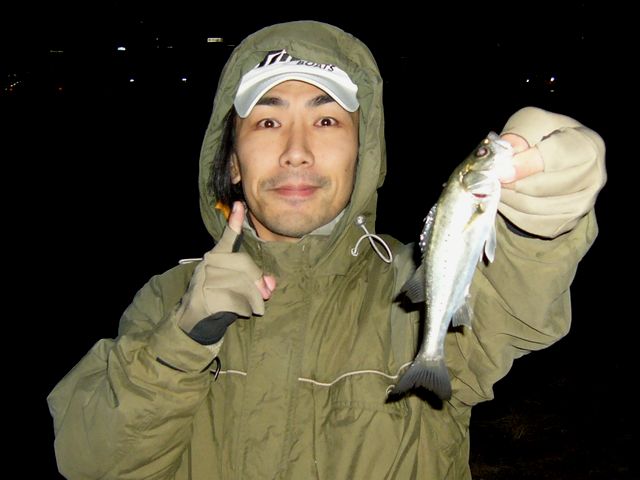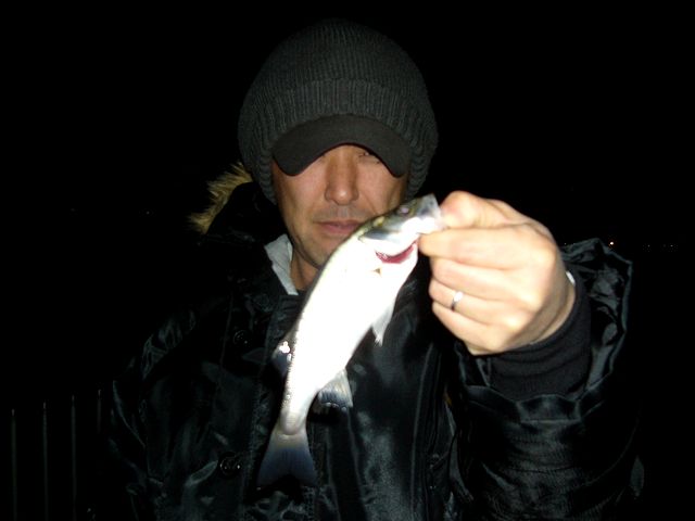 すかさずフッキングして小気味よい魚の“引き感”を久々に味わいつつ、暗い海面からスッと抜き上げてみたら・・「ん?あれ!?なんかコイツ銀色なんだけど!?」って、そうなんす・・一見アジに見える今年一発目の魚は、体長20cm程の小さなシーバスちゃんだったんです(苦笑)。