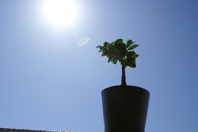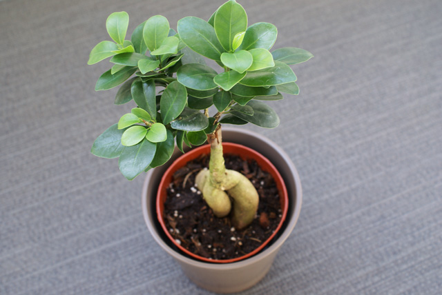 こいつの名は『ガジュマル』っていうんだけど、やけに太い幹のところとか何だかイイ味出しててさぁ・・売り場に有った沢山の鉢の中からこいつを持って帰って来たんだけど、やっぱ家の中に緑が有ると癒されるよねぇ。