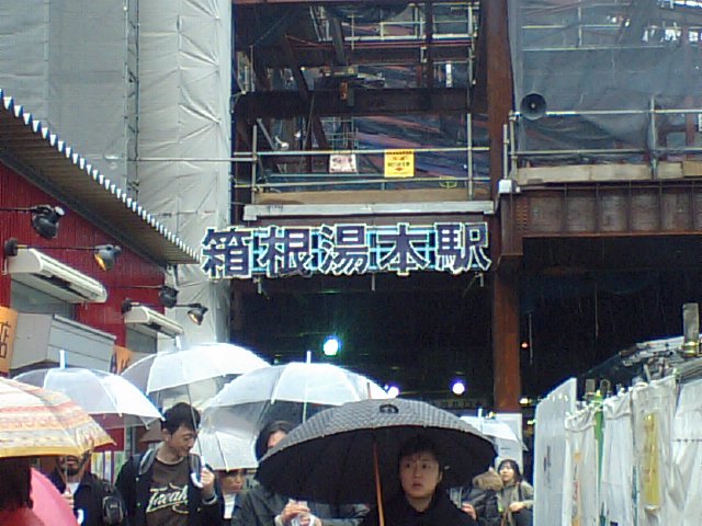 先ず、8日(土)の朝9:30に新宿発の“小田急ロマンスカー”に乗り、約1時間半後の10:54に箱根湯本へ到着。(雨降ってま~す)