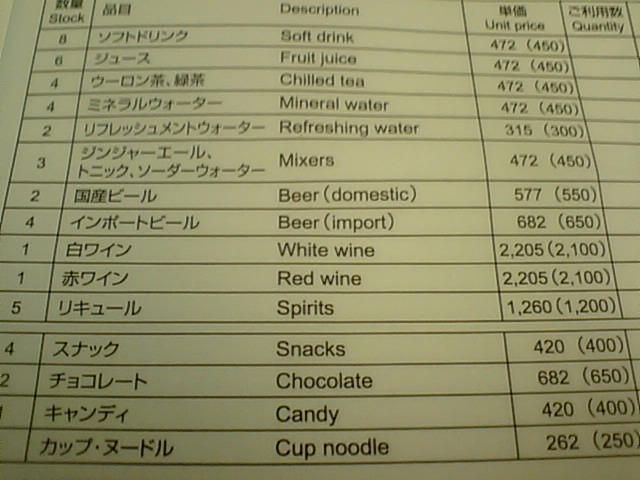 冷蔵庫の中の飲食物の料金表なんだけど・・・