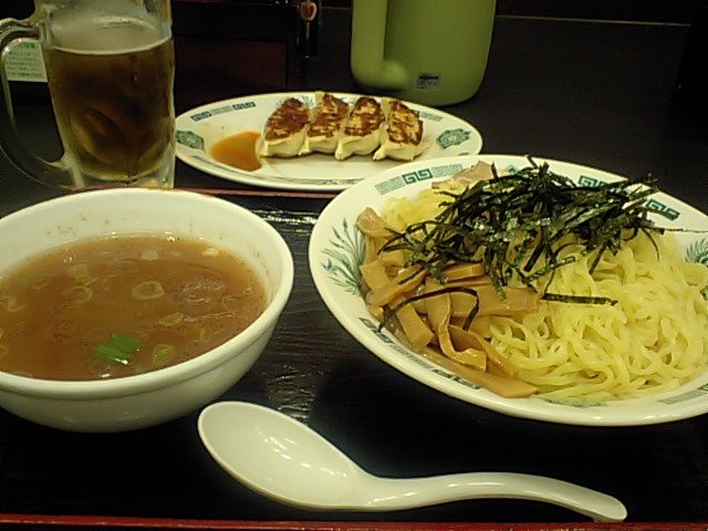 そんでもって注文の時はやっぱり‥「(ラーメン!イケメン!)僕‥え~っと和風つけ麺と餃子と生ビールでお願いします…(-o-;)」って普通のオーダーしか出来ない小心者です…。