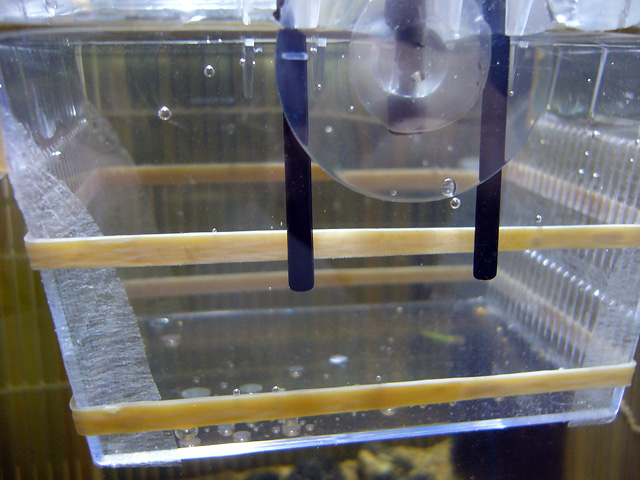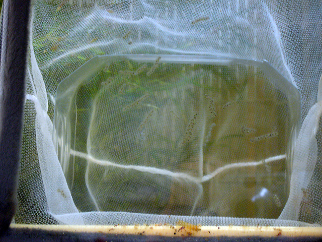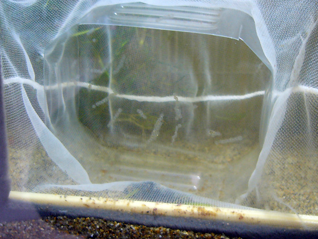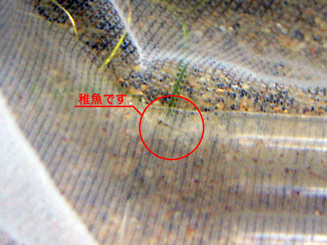 っで、孵化した後の稚魚を守る為、とりあえずネットの目が超細かい網できっちりと囲ってみた。(ちなみに卵の直径は1mmくらいです)