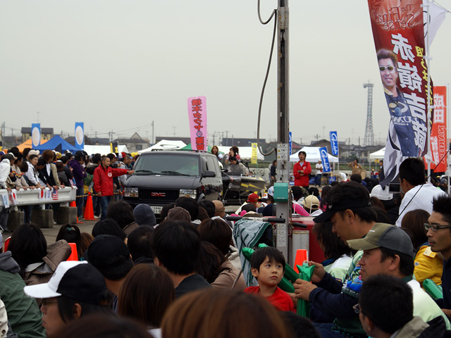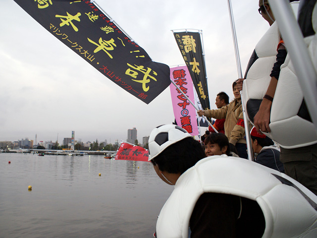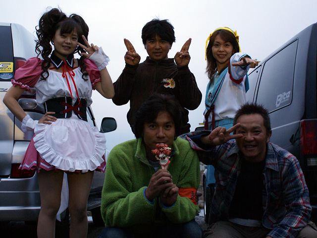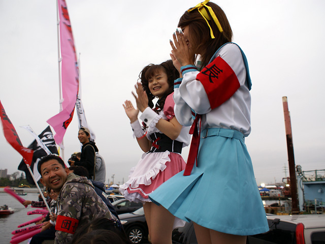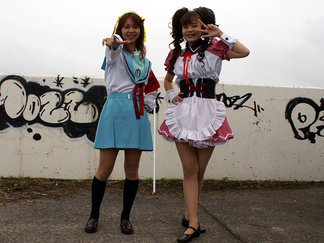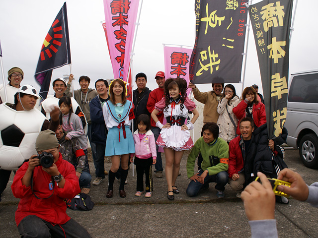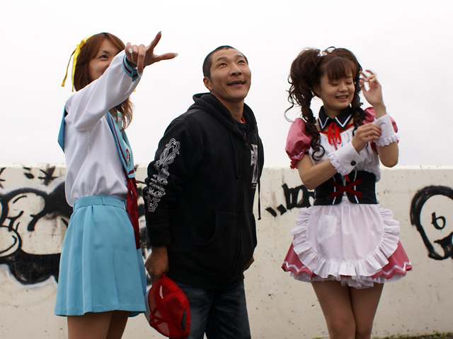 応援団の中に“ハルヒ”と“みくるたん”のコスプレイヤーがいるのを何も知らないTAKU接近中!