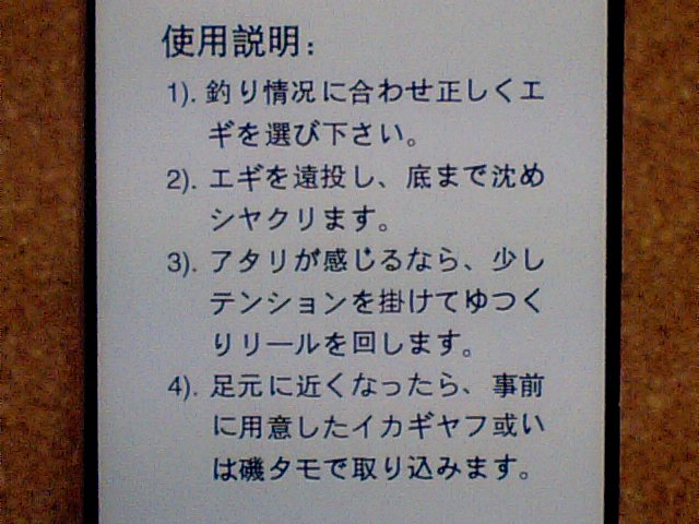 “アオリQ”とかのメジャーなエギと比べて、作りのショボさは否めないのは事実なのですが・・一番気になるのはパッケージ裏の『使用説明』なんす・・・。
