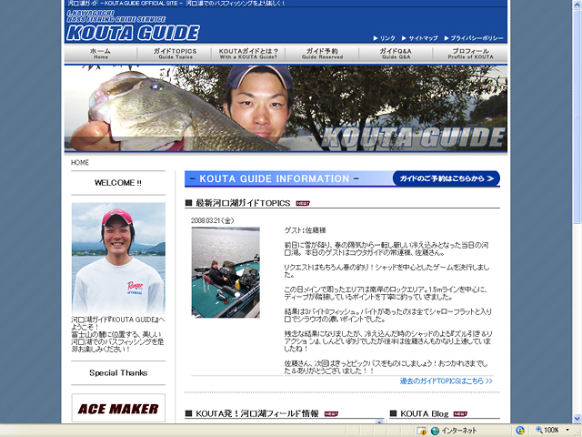 そのサイトとは・・日々地道に練習を重ねながらトーナメントに参戦し、優勝を含む多数の上位入賞を重ねている若手実力派(?)『勝又康太』の河口湖ガイド【KOUTA GUIDE】オフィシャルサイトです!