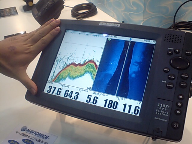 色んなブースを見て回ったんですが、個人的に一番「欲しい!」って思ったモノは‥ハミンバードの例のGPS魚探デッカイ版ですねぇ。