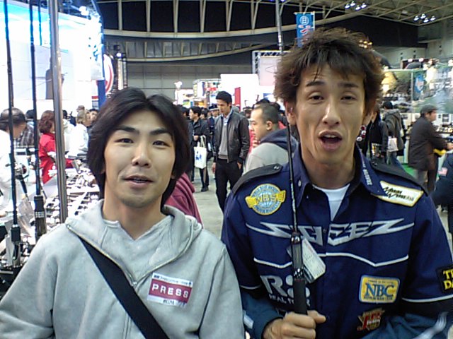 途中で暇潰し(?)にダイワのブースに行き、同じく暇そうだった売れっ子の橋本卓哉様と何故かブログ用のツーショット写真を撮ってみました!