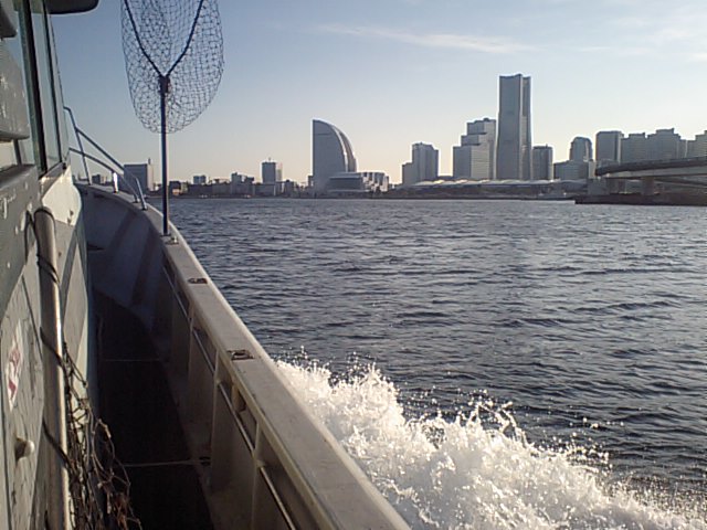 ちょっとだけ天気が心配だったんだけど、朝から晴れて暖かい絶好の釣り日和となり、午前中にTC15Bさん&U二さんと集合して、前日に行ったフィッシングショー会場のパシフィコ横浜からかなり近い場所にある、U二さん御用達のシーバスガイド"ジョイマリン"さんより、船酔いし易いオイラはバッチリと酔い止め薬を飲んで、16:00頃からドキドキの初ボートシーバスを開始!