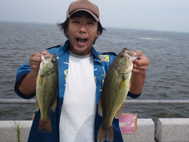 オイラが1000gくらいの釣った直後に、こじぱんが900gくらいのナイスバスちゃんゲッツ!!(≧∇≦)
