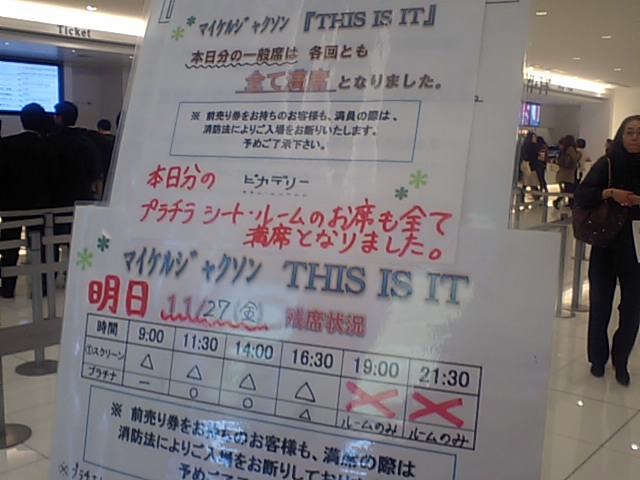 昨日、地道な努力の末(?)何とかチケットを手に入れ、仕事帰りに池袋のシネマサンシャインで『THIS IS IT』を観て来ました。